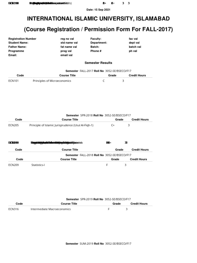 (Course Registration / Permission Form For FALL-2017)