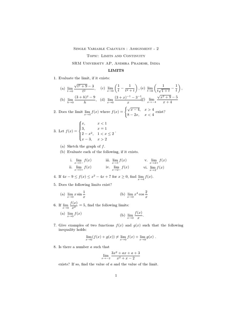 t→0 t2 x→0 t t2 + t t→0 t 1 + t t