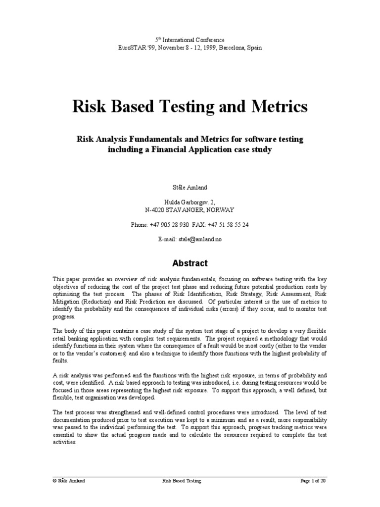 cost, were identified. A risk based approach to testing was introduced, i.e. during testing resources would be