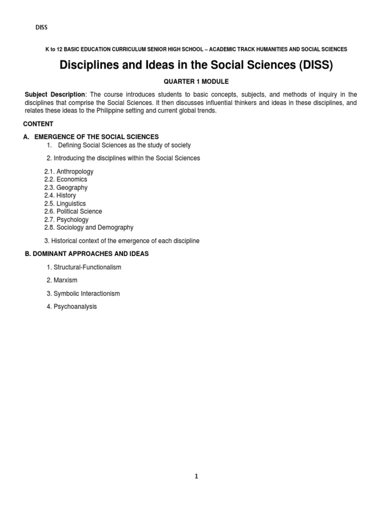 a. The learners define Social Sciences as the study of society (HUMSS_DIS 11- IIIa-1)