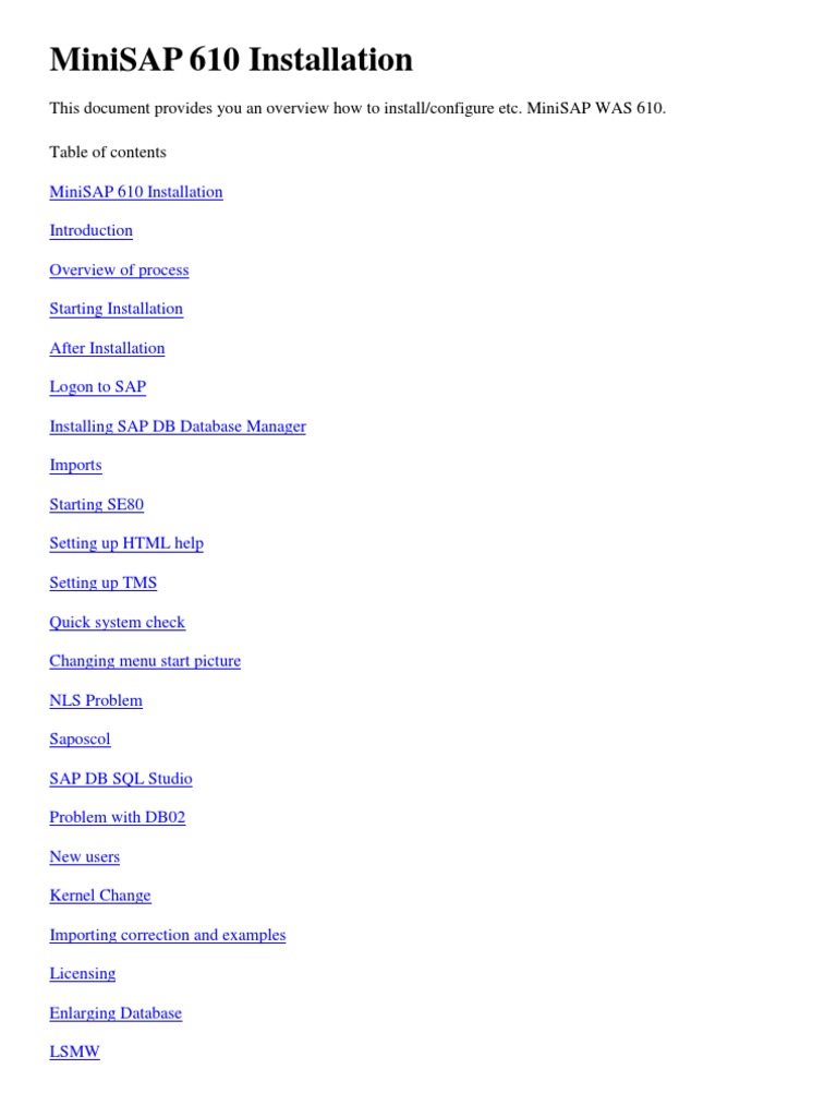This document provides you an overview how to install/configure etc. MiniSAP WAS 610.
