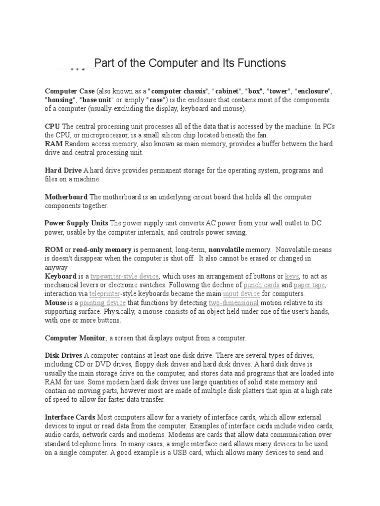 "housing", "base unit" or simply "case") is the enclosure that contains most of the components