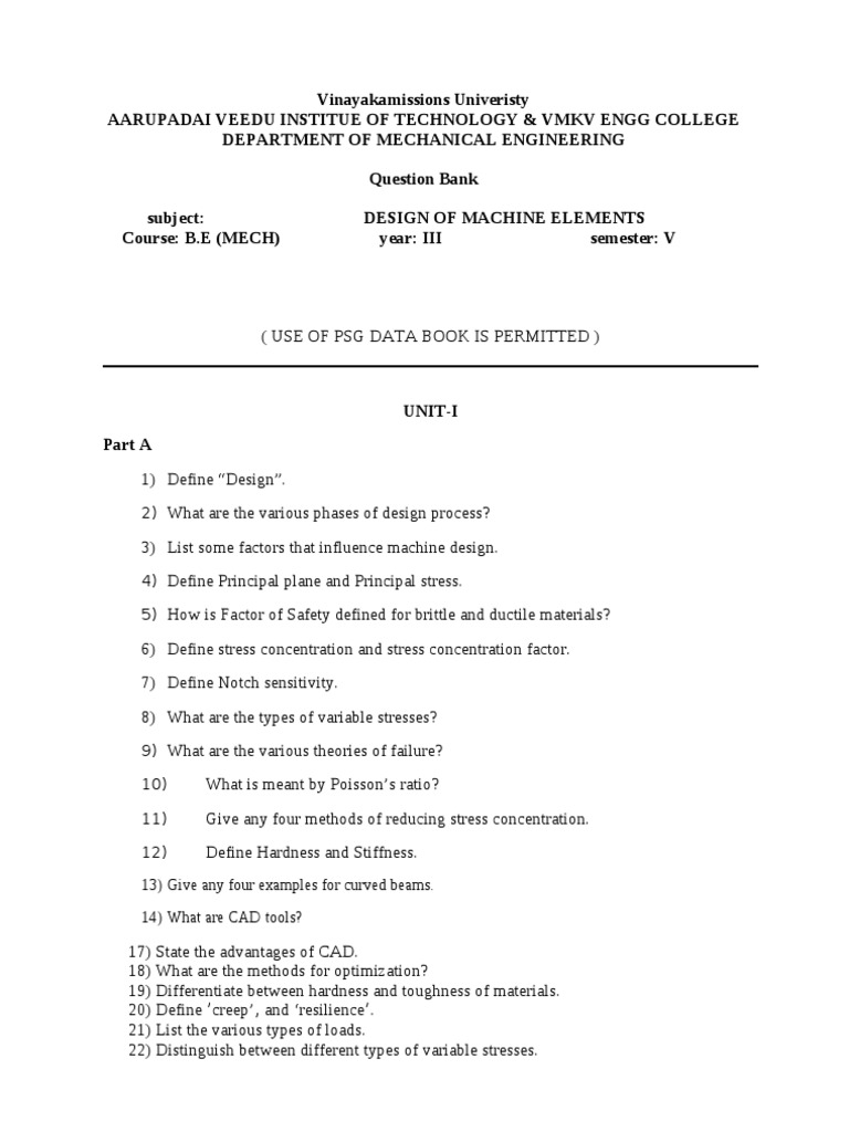 subject: DESIGN OF MACHINE ELEMENTS