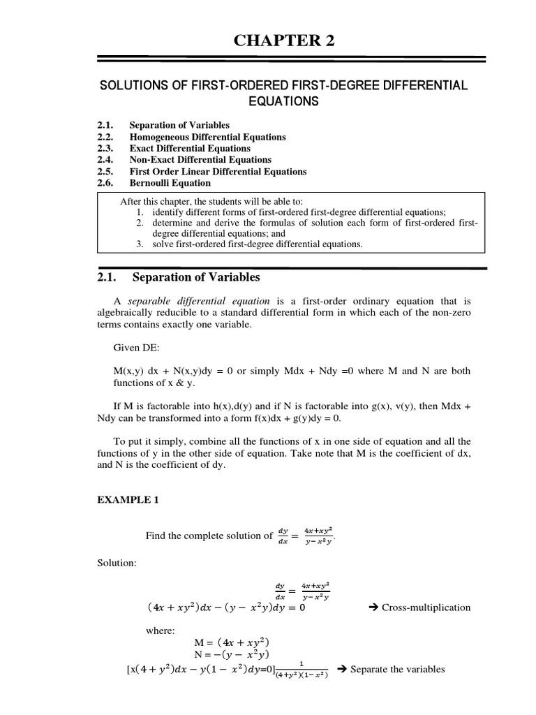 1. identify different forms of first-ordered first-degree differential equations;