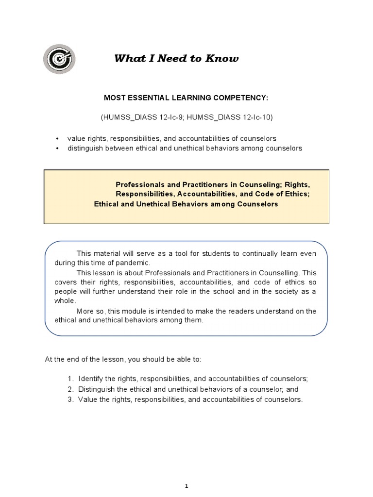 1. Identify the rights, responsibilities, and accountabilities of counselors;