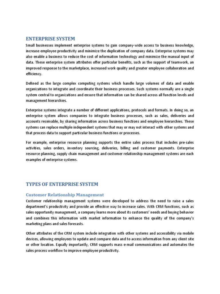 increase employee productivity and minimize the duplication of company data. Enterprise systems may