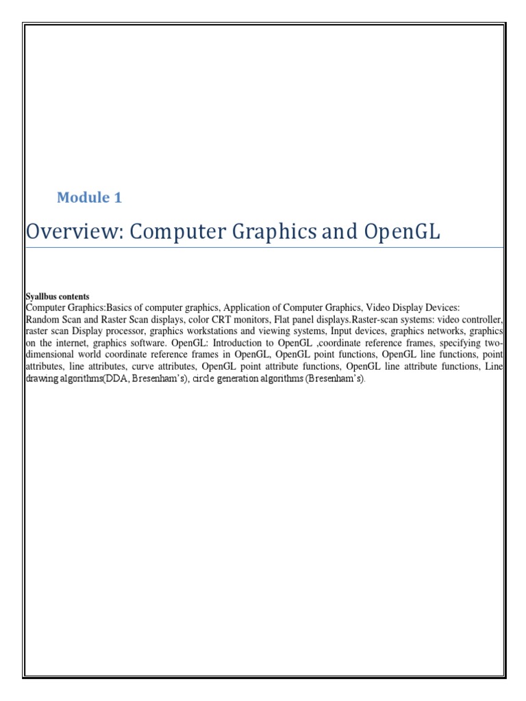 drawing algorithms(DDA, Bresenham’s), circle generation algorithms (Bresenham’s).