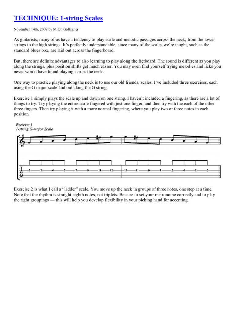 Exercise 1 simply plays the scale up and down on one string. I haven¶t included a fingering, as there are a lot of