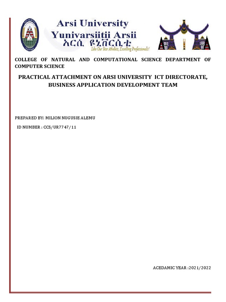 PRACTICAL ATTACHMENT ON ARSI UNIVERSITY ICT DIRECTORATE,