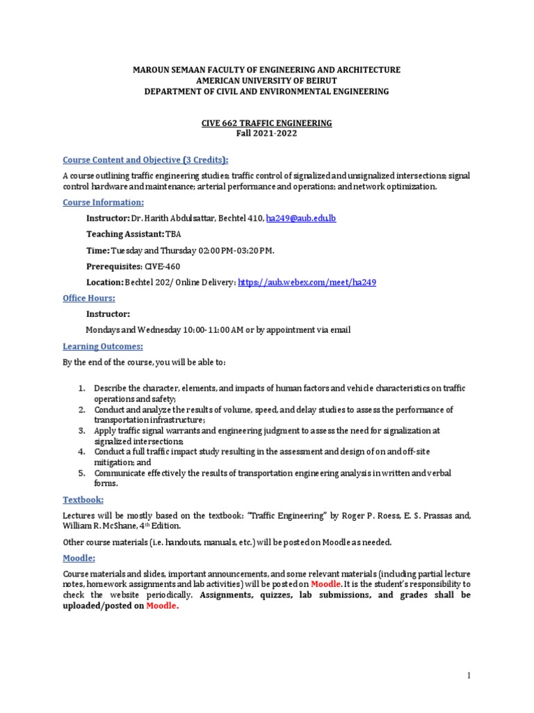 Lectures will be mostly based on the textbook: “Traffic Engineering” by Roger P. Roess, E. S. Prassas and,