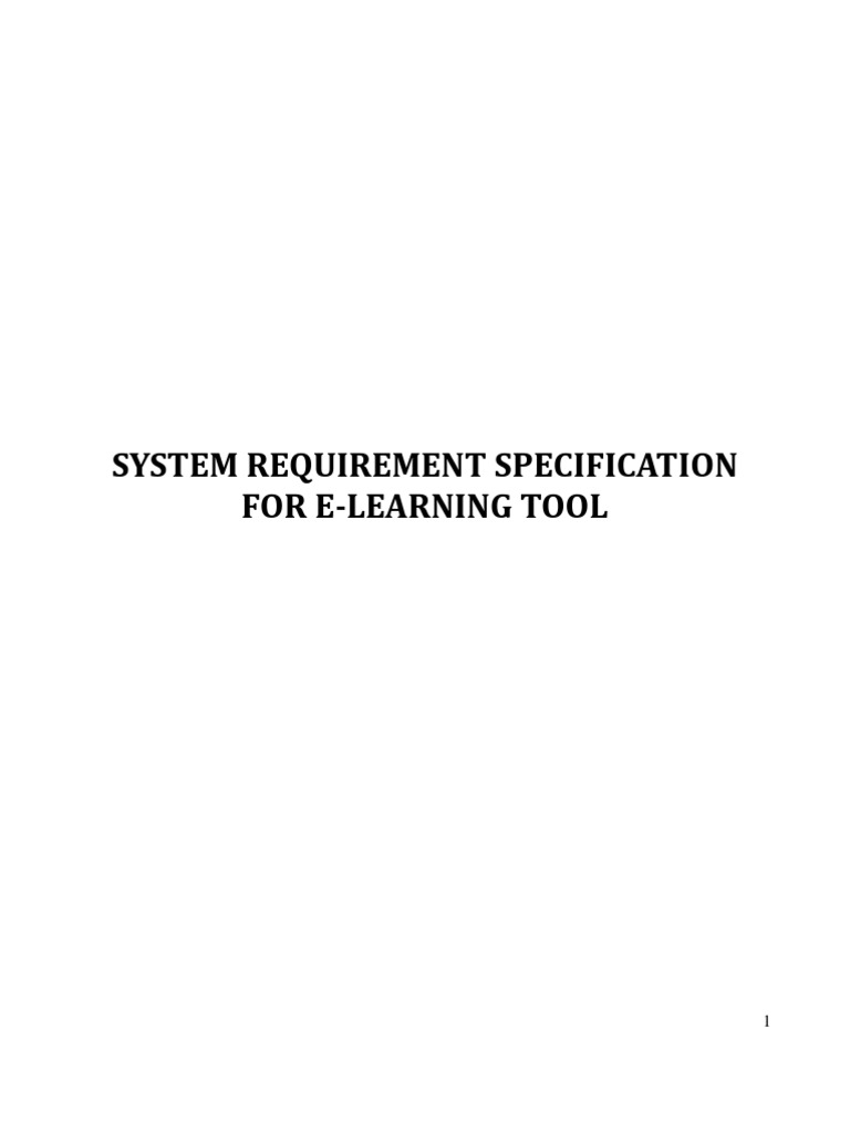 This Software Requirements Specification specifies the requirements of the E-Learning tool