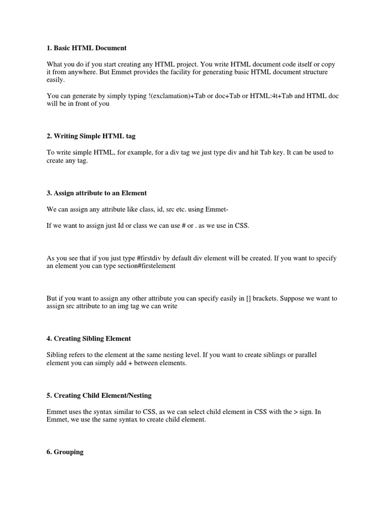 it from anywhere. But Emmet provides the facility for generating basic HTML document structure