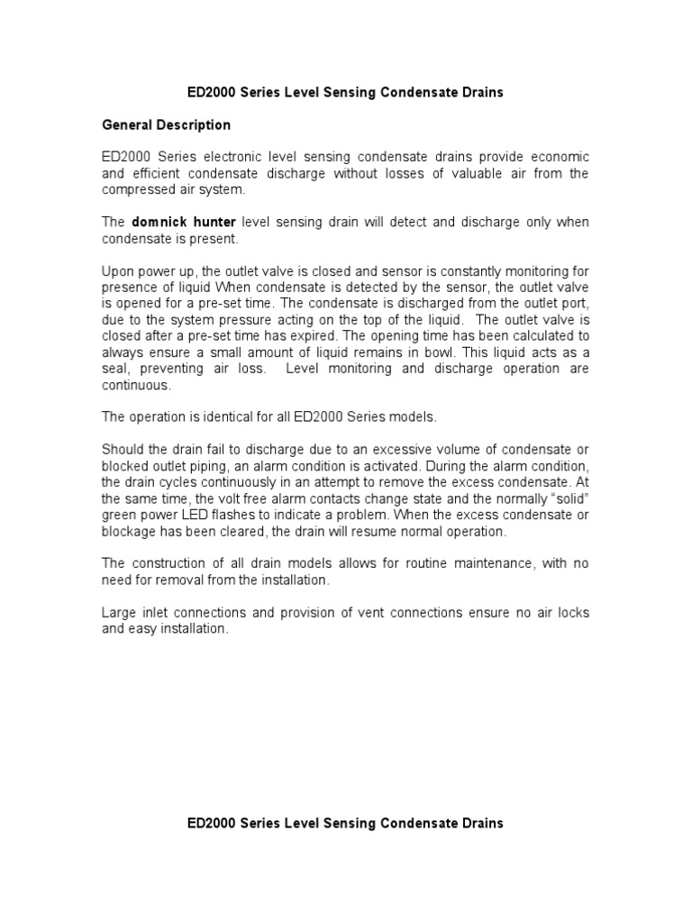 presence of liquid When condensate is detected by the sensor, the outlet valve