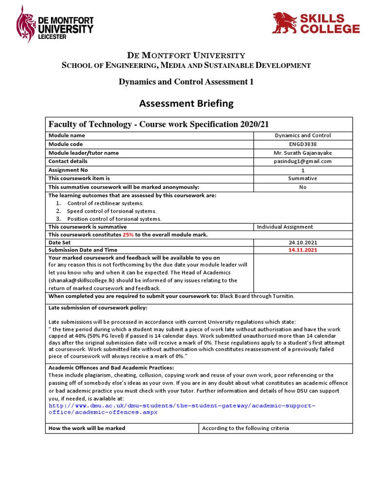 You will also submit the MATLAB/ SIMULINK codes and Programmes (as an Appendix to