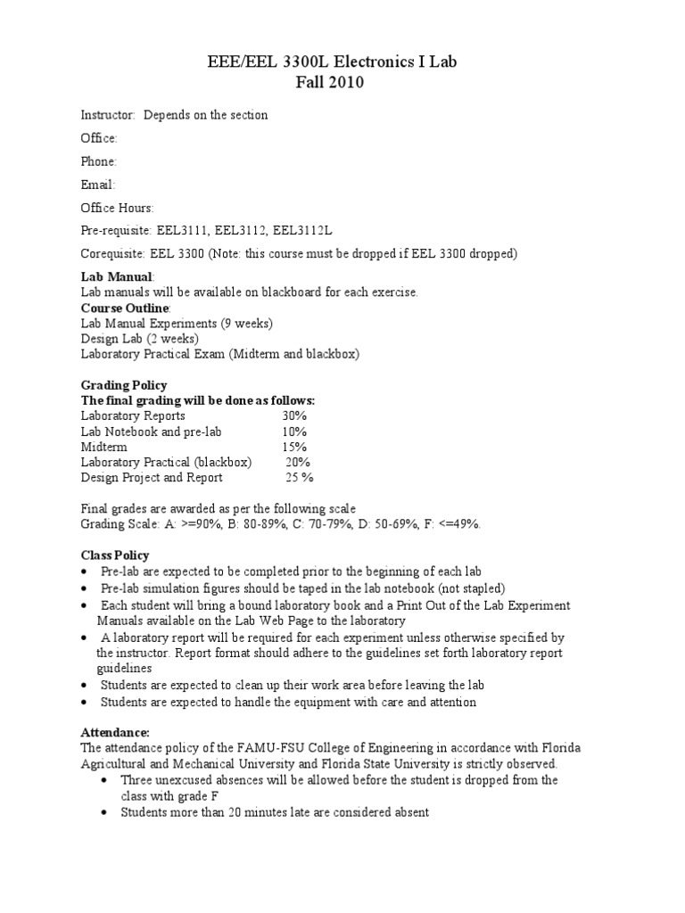 • A laboratory report will be required for each experiment unless otherwise specified by