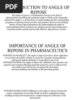Granule flowability is determined by a number of factors, one of which being the angle of repose .