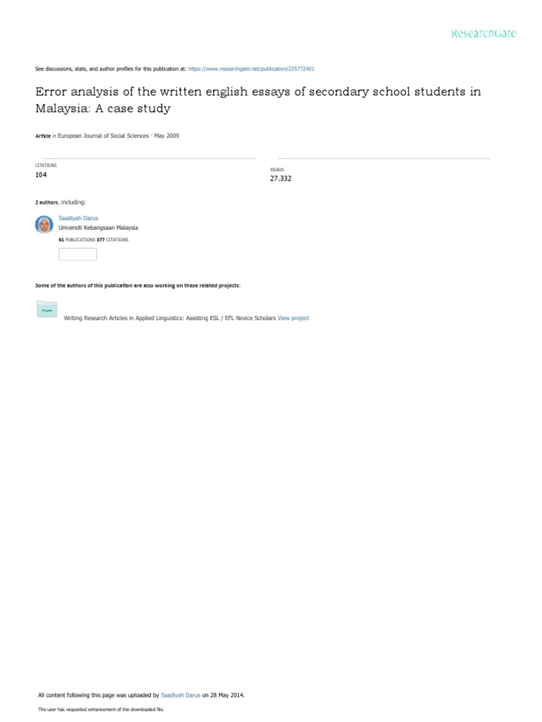 Error Analysis of The Written English Essays of Secondary School Students in Malaysia: A Case Study