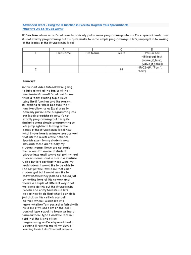Advanced Excel - Using the IF Function in Excel to Program Your Spreadsheets