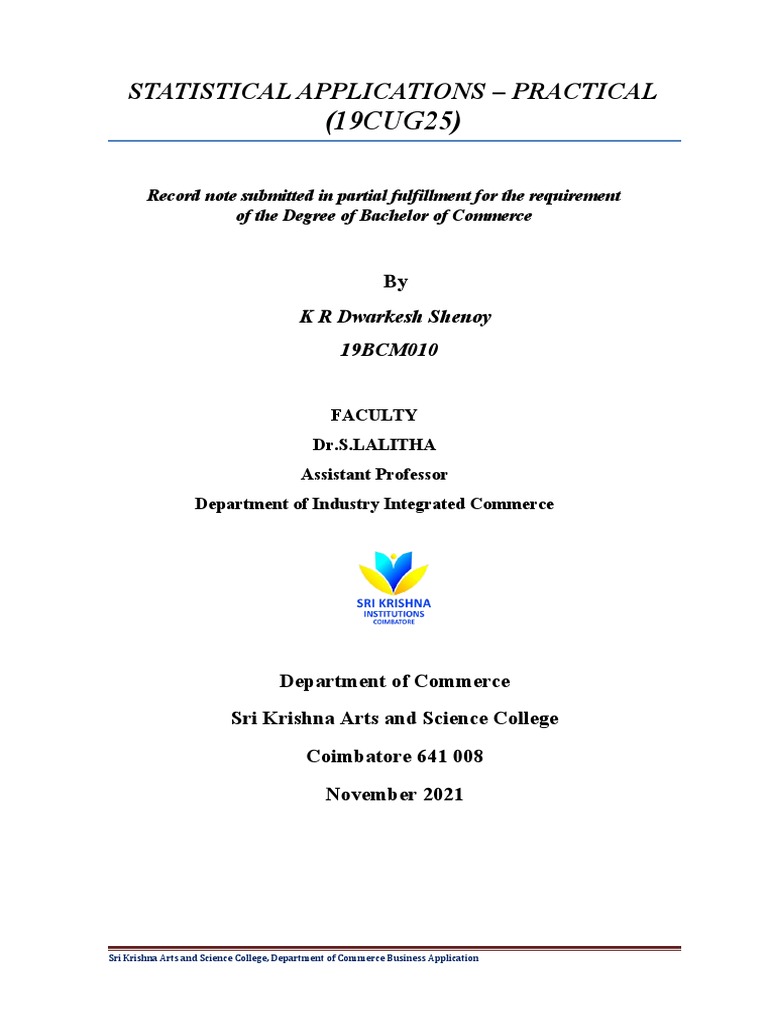 I hereby declare that the Record note for the course titled “Statistical Applications –