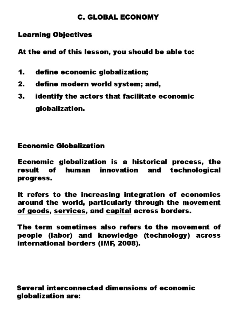 1. define economic globalization;