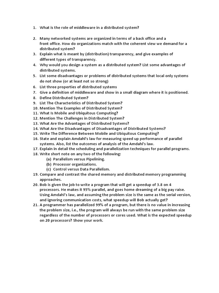 1. What is the role of middleware in a distributed system?