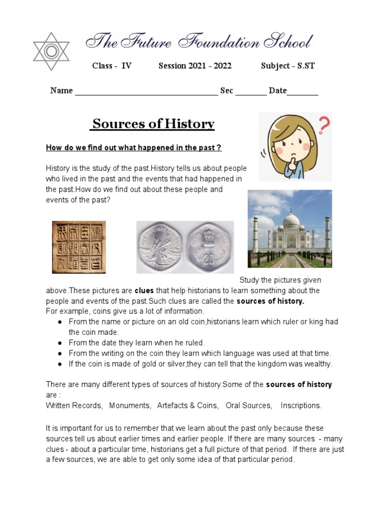 Written Records, Monuments, Artefacts & Coins, Oral Sources, Inscriptions.