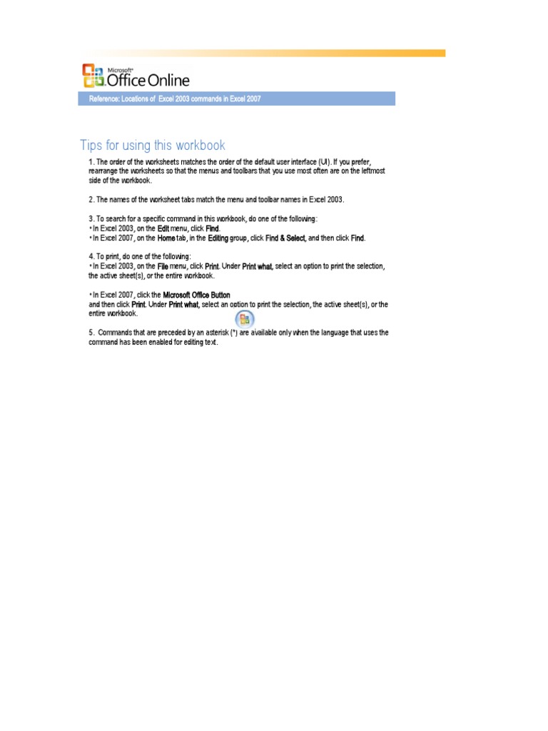 Locations of Excel 2003 Commands in Excel 2007