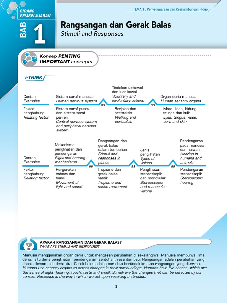 dapat dikesan oleh deria kita. Gerak balas adalah cara kita bertindak ke atas rangsangan yang diterima.