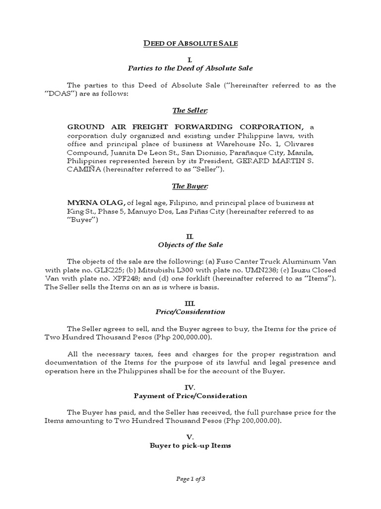 The parties to this Deed of Absolute Sale (“hereinafter referred to as the