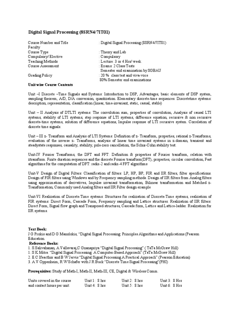 Course Number and Title : Digital Signal Processing (8SRN4/7IT01)