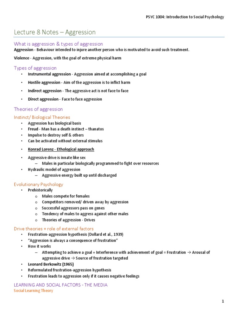 Aggression - Behaviour intended to injure another person who is motivated to avoid such treatment.