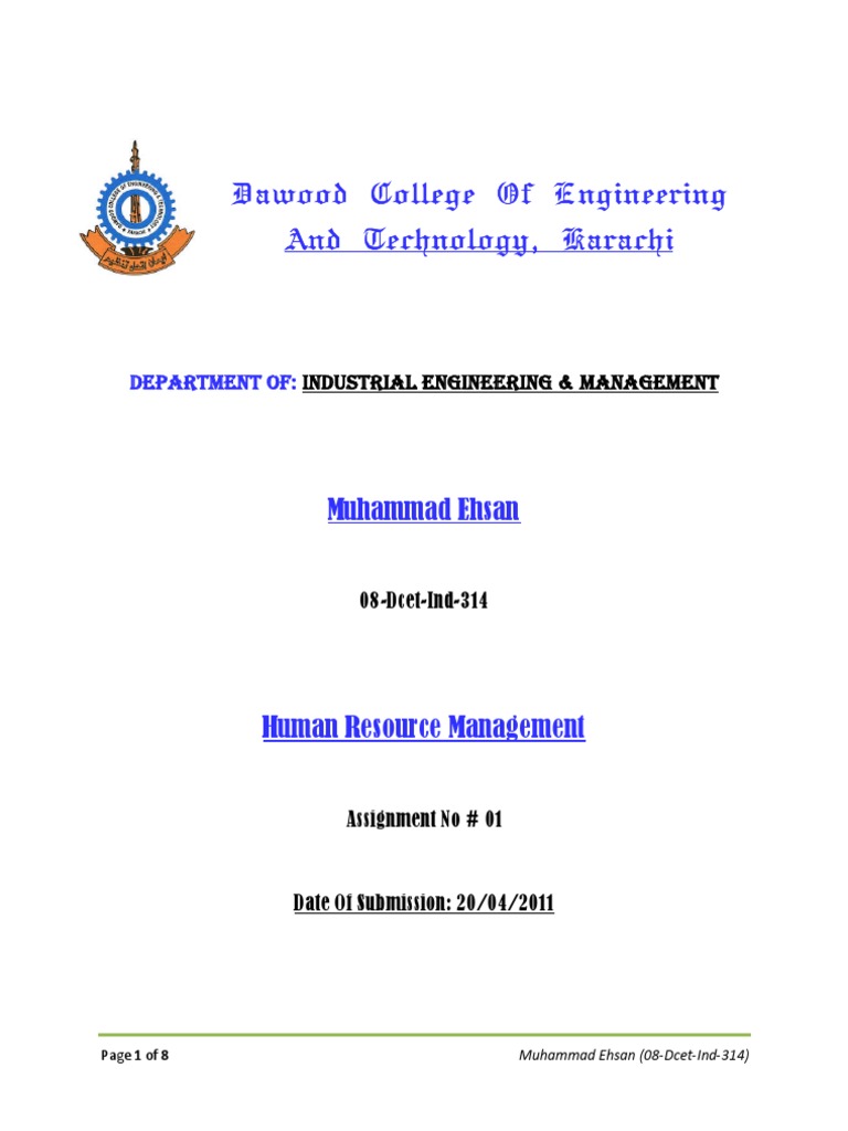 Human Resource Management (Assignment No # 01) Date: 20/04/2011