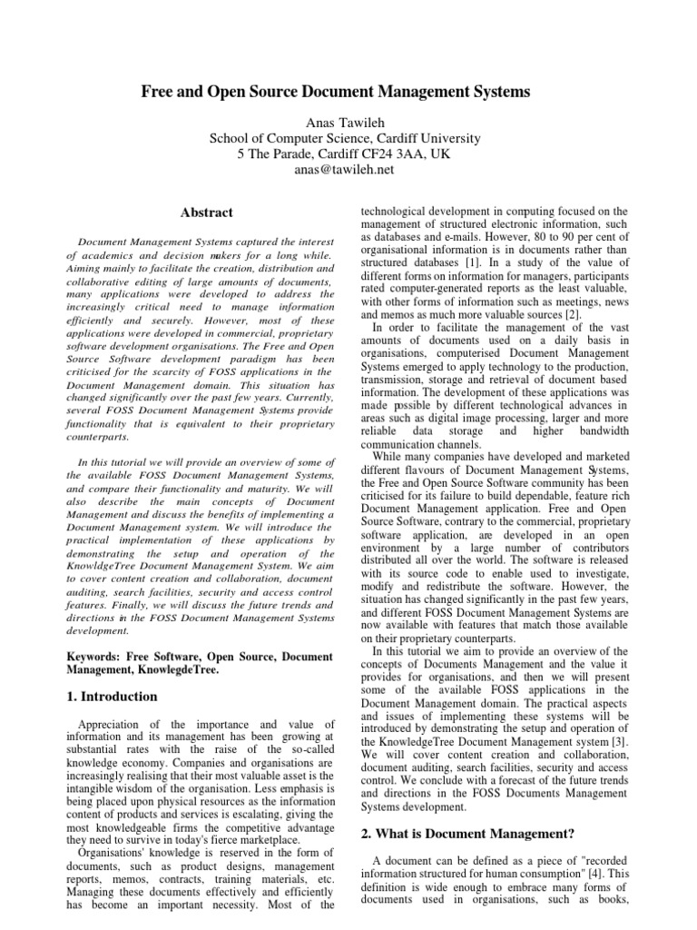 to observe is the convergence of Document Management [8] Perez, C.E., "Open Source Document Management