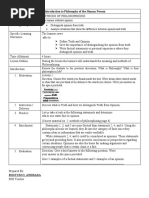 1. The document discusses different methods of philosophizing and distinguishing opinions from truth. 2. It provides a learning competency for students to distinguish opinion from truth, understand how philosophy leads to wisdom and truth, and evaluate truth from opinions. 3. Students are tasked to write about an unforgettable experience where they were fooled, how they discovered it, and reflect on how such an experience affected them.
