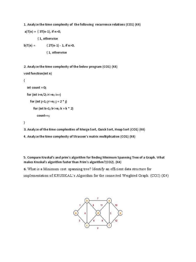 Analyze the time complexity of the following recurrence relations (CO1) (K4)