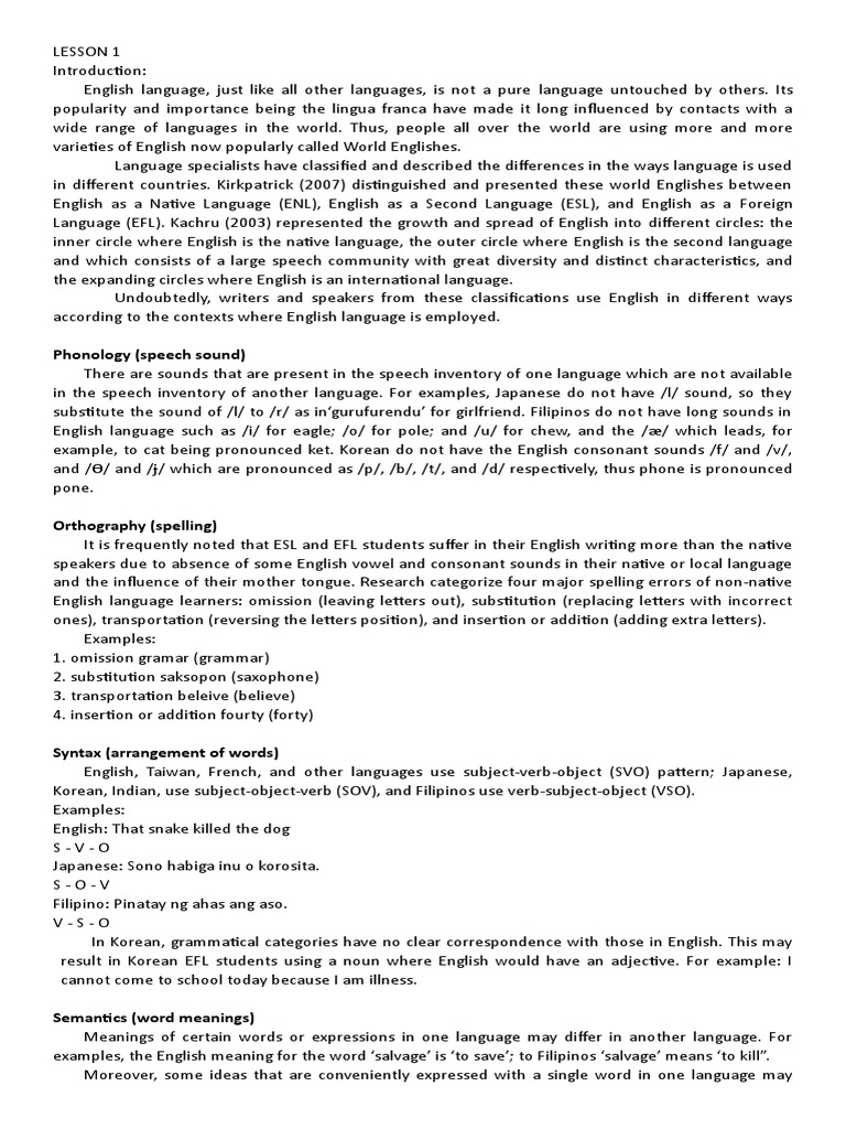in different countries. Kirkpatrick (2007) distinguished and presented these world Englishes between