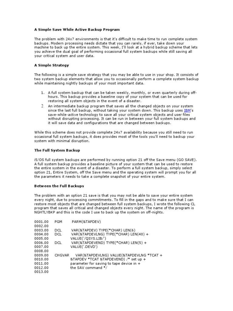 system processing. With the option 21 save and this save-while-active backup shell, you have