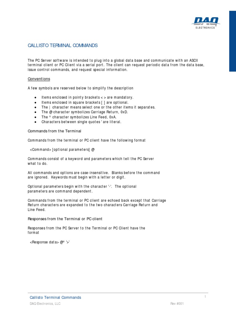 Listed below are the set of commands a PC client can issue to the PC Server.