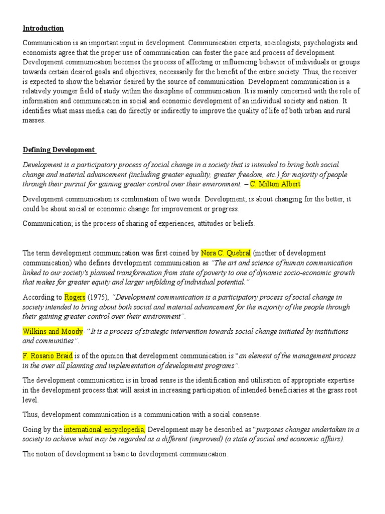 The term development communication was first coined by Nora C. Quebral (mother of development