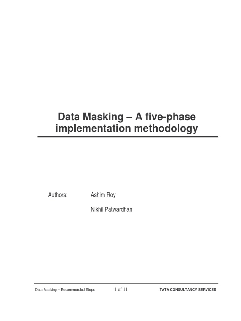 A five-phase process for data masking exercise is recommended here. Before one can start