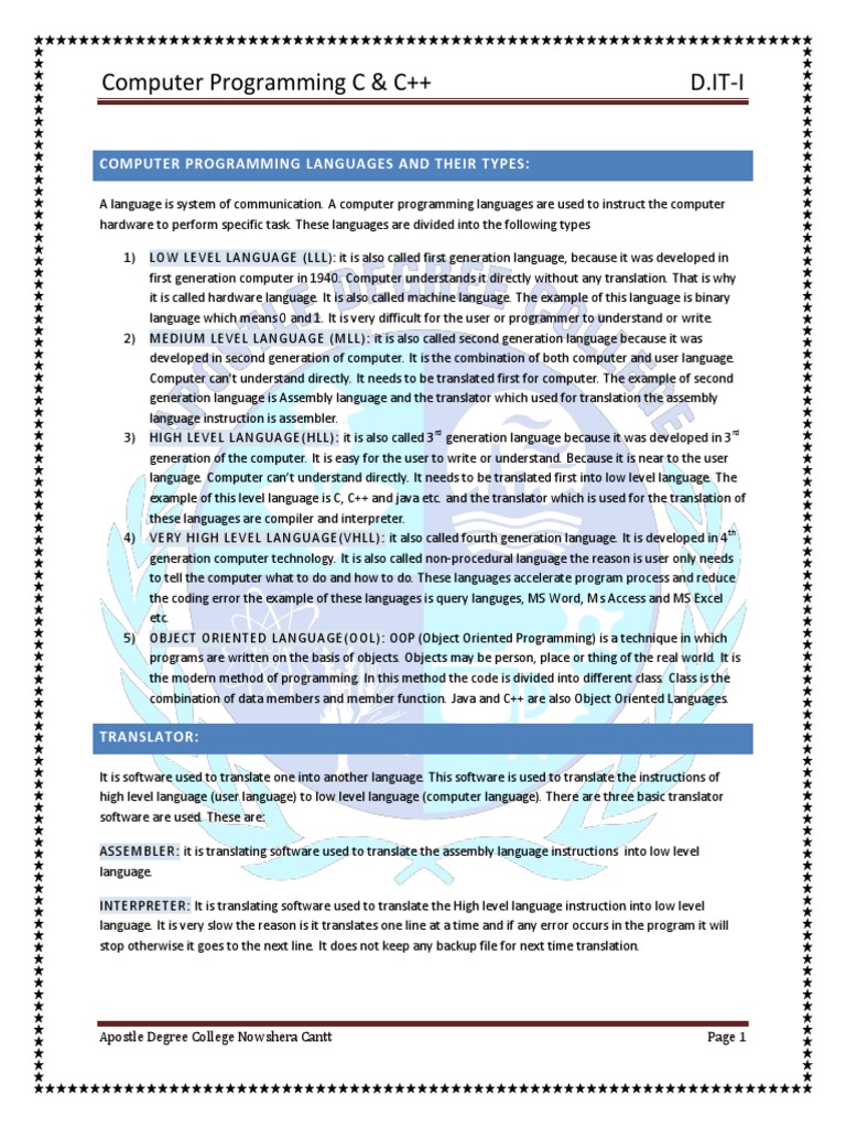 COMPUTER PROGRAMMING LANGUAGES AND THEIR TYPES: