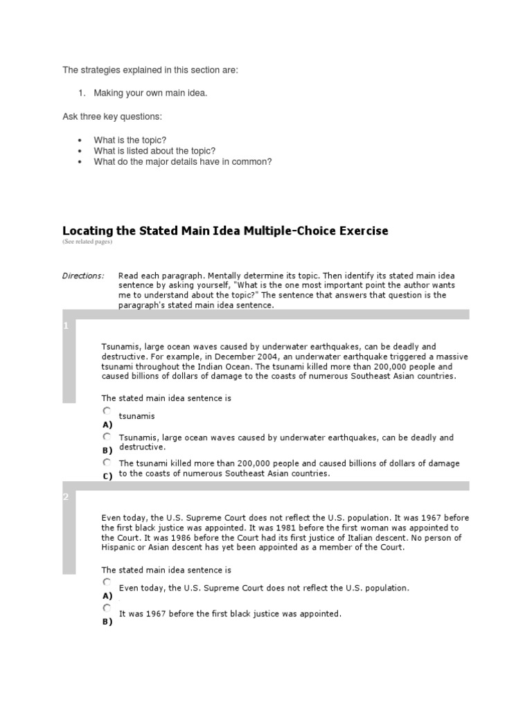 Locating the Stated Main Idea Multiple-Choice Exercise