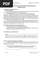 Brawner, Dalisay G. and Arcega, Analiza F., UNDERSTANDING THE SELF, C &