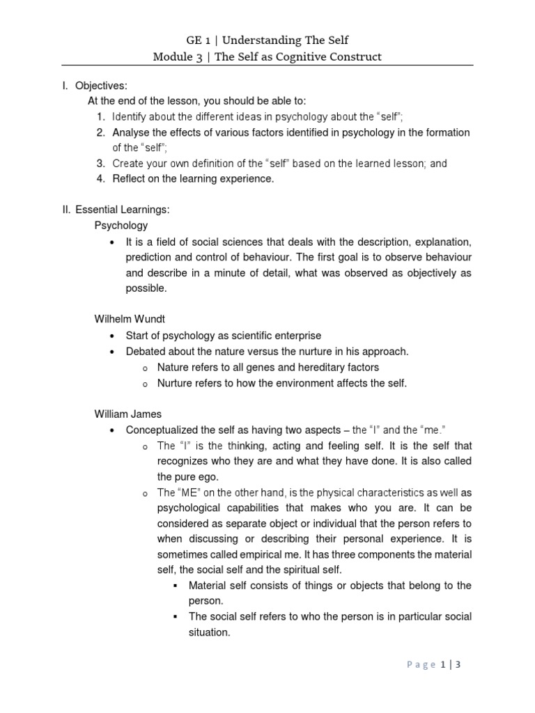 Haw the self, its mental processes and one’s behaviour as the results of the