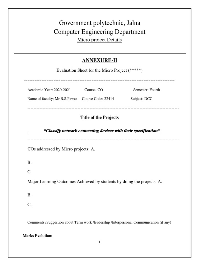 Evaluation Sheet for the Micro Project (*****)