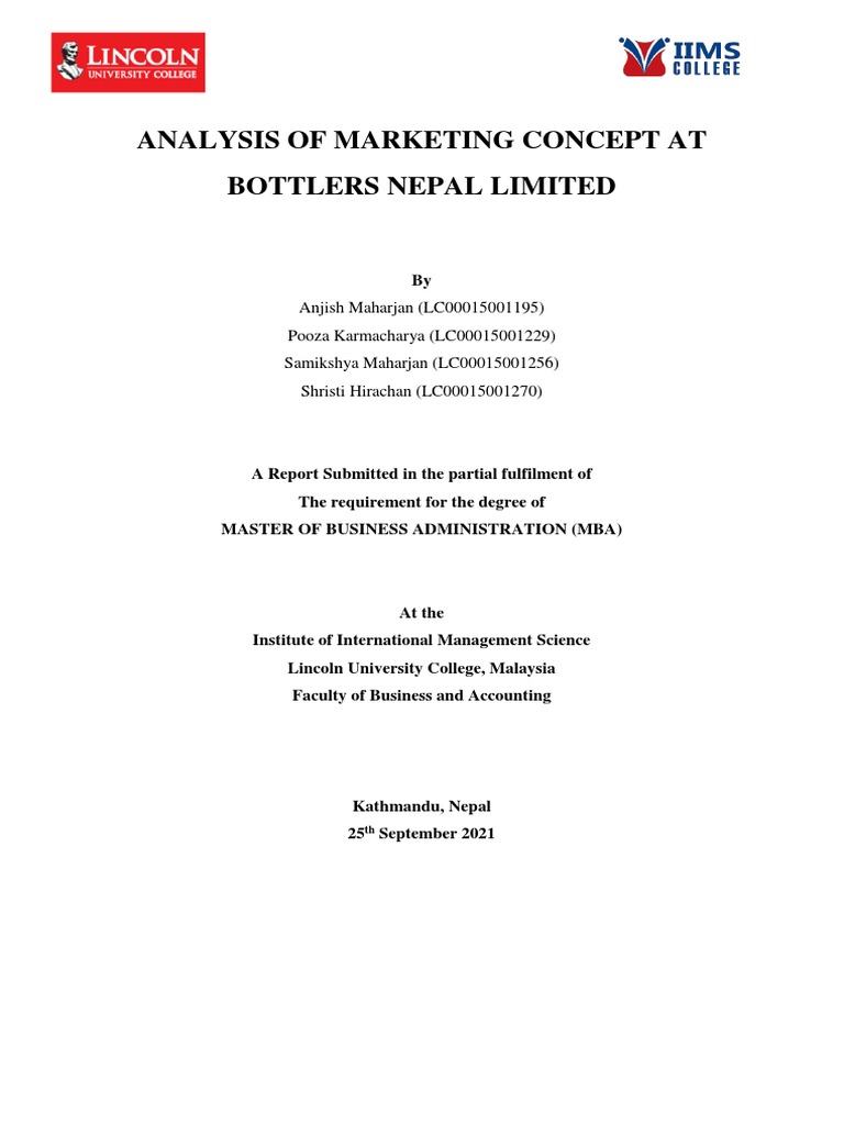 Nepal Limited” submitted to Lincoln International University is our genuine work done