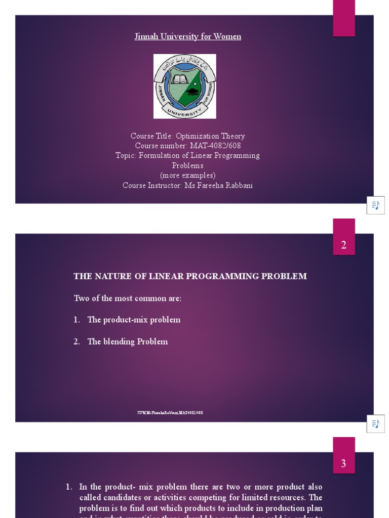 THE NATURE OF LINEAR PROGRAMMING PROBLEM