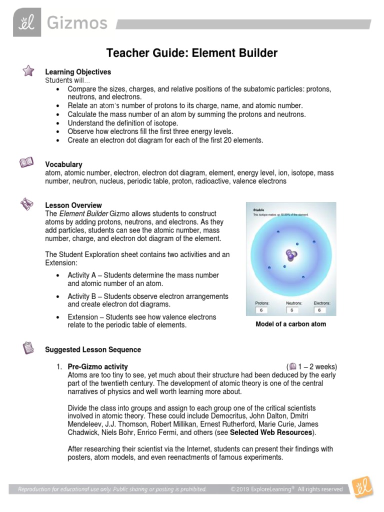 3. Gizmo activities ( 15 – 20 minutes per activity)