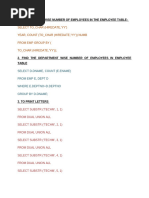 4). INSERT INTO employ VALUES(100,’KUMAR’,’CLERK’,2000,10);