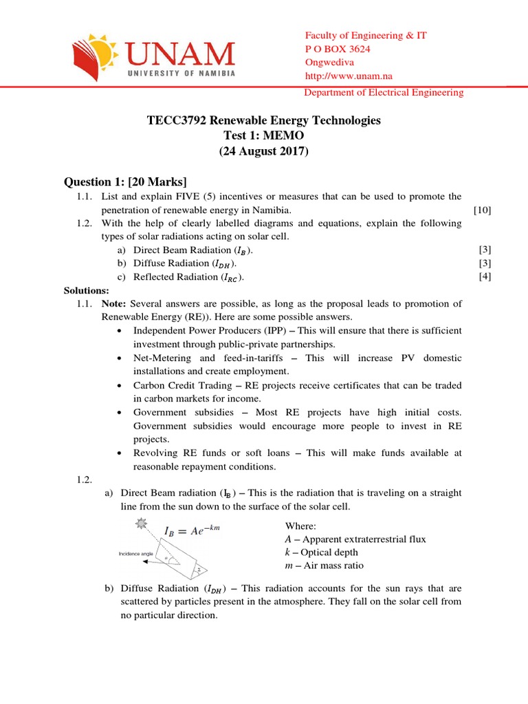 Renewable Energy Exam Solutions